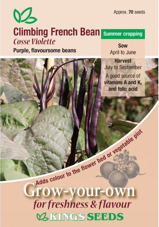 Kings Seeds Climbing French Bean Cosse Violette Seeds